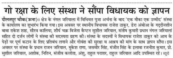 by : admin सभी समाचार पत्रों ओर पत्रकारों का धन्यवाद जिन्होंने संस्था के कार्यों को अखवार में जगह दी।