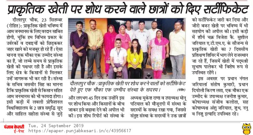 प्राकृतिक खेती में ही है भविष्य : एक मौका एक उम्मीद LPU के BSC Agriculture(Honors) final year के दो छात्रों समृद्धि सूद ओर साहिल सहोता ने प्राकृतिक…