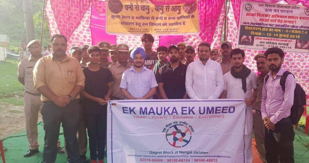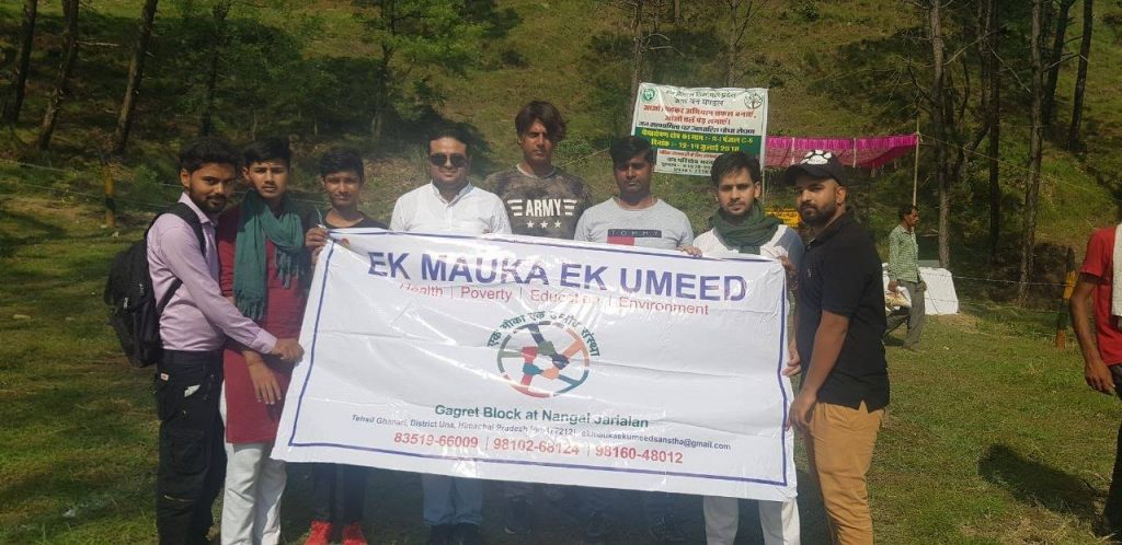 एक मौका एक उम्मीद संस्था के सदस्यों ने गांव दियोली मैं नीम के 50 पौधे गांव वासियों को लगाने के लिए दिए