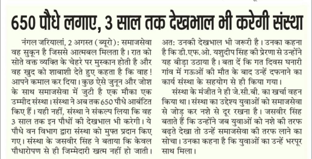 एक मौका एक उम्मीद संस्था ने लगाए 650 पौधे