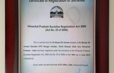 एक मौका एक उम्मीद संस्था के सदस्यों ने गांव दियोली मैं नीम के 50 पौधे गांव वासियों को लगाने के लिए दिए