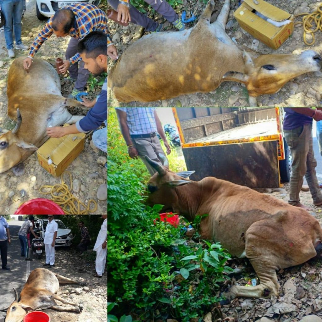 सड़क दुर्घटना में मवा(main road पर) गाय क्षतिग्रस्त ओर गाड़ी का भी नुकसान। संस्था के सदस्यों ने first aid करवाया। Dr. Guleria जी ने गाय के उपचार के लिये तुरंत vetnery pharmacist को भेजा। इसके उपरांत, बाबा राकेश जी घायल गाय को गौशाला ले गए। पशुपालन विभाग का धन्यवाद ओर बाबा जी को कोटि कोटि नमन। गौबंश सरंक्षण के लिये अपना अपना योगदान देते रहें।
