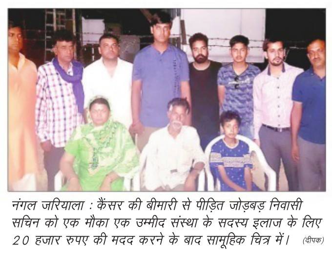 *आज एक मौका एक उम्मीद संस्था ने सचिन के परिवार को ₹20000 रुपए उसके इलाज के लिए दिए*