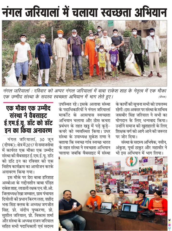 गंदगी हमें ही साफ करनी है। अपना कचरा खुद व्यवस्तिथ करें। हमें घर, आसपास और गांव साफ करना है, तभी भारत बर्ष साफ होगा। गांव नंगल जरियाला में, 1.5 km सड़क के किनारे से एक ट्राला कूड़े का निकला है। कूड़े को सही जगह पर फेंकें। यही कूड़ा चारों तरफ फैल जाता है। गीले ओर सूखे कूड़े के लिये अलग अलग गढ़े बनाएं, और गीला और सूखा कचरा अलग-अलग गढ़ो में डालें।