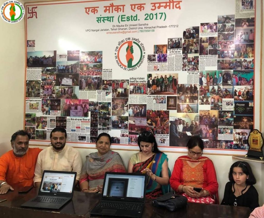 आज जिला स्तरीय NGO ने मिलकर संस्था की वेबसाइट www.emeu.co.in का आवरण किया। website में सभी कार्यों का व्योरा है। इस मौके पर बाबा पंडित राकेश जी, लाडली रक्षक NGO की जिला अध्यक्ष, समाजसेवी ओर प्रधान ग्राम पंचायत दियोली, शाहिद भक्त सिंह क्लब के अध्यक्ष जगजीत सिंह, प्रोफेसर संदीप, प्रोफेसर सुशील जरियाल, प्रोफेसर विकास और संस्था के सदस्य थे।