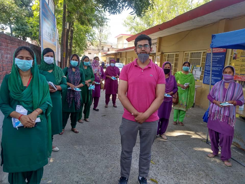 Distribution of Mask, Gloves and Sanitizer in Gagret by Ashok Sonkhala and Rahul Prashar